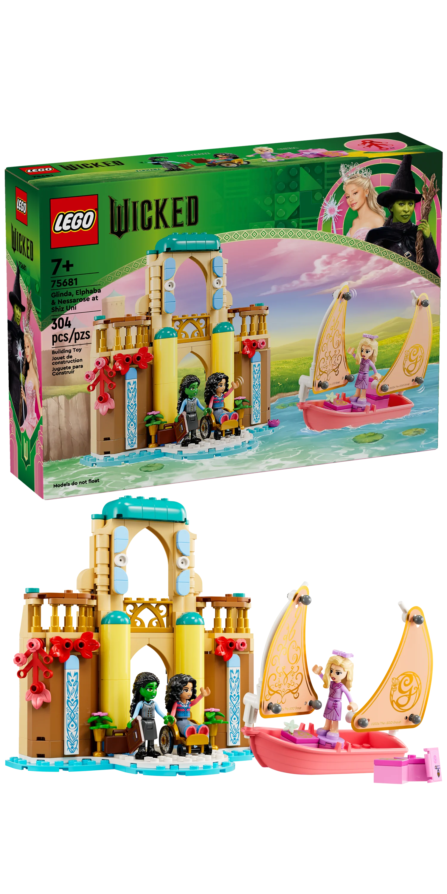 Fans embark on their LEGO® Wicked adventure as Glinda arrives at Shiz University on a sailboat toy for kids. The boat toy has a hinged sail and comes in a pink shade, just like the one from the movie. Inspired by the Wicked movie, this best-friend gift lets kids play out friendship stories between the Glinda, Elphaba and Nessarose mini-doll figures.