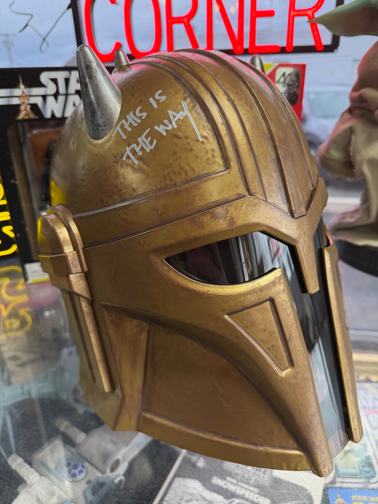 We are raffling off a Hasbro Star Wars The Black Series Prop replica helmet for The Armorer signed by actress Emily Swallow. The signature has been certified for authenticity by JSA. Paperwork included. The prize will be shipped to the winners address provided at time of checkout.