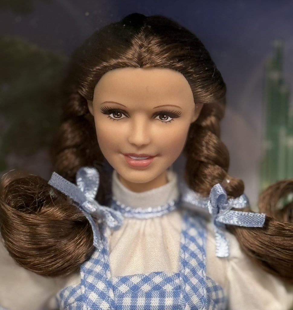 The 2012 Barbie Pink Label 75th Anniversary Wizard of Oz Dorothy marked the first time Mattel offered a Dorothy doll sculpted in the likeness of the iconic Judy Garland, and this one is GORGEOUS!