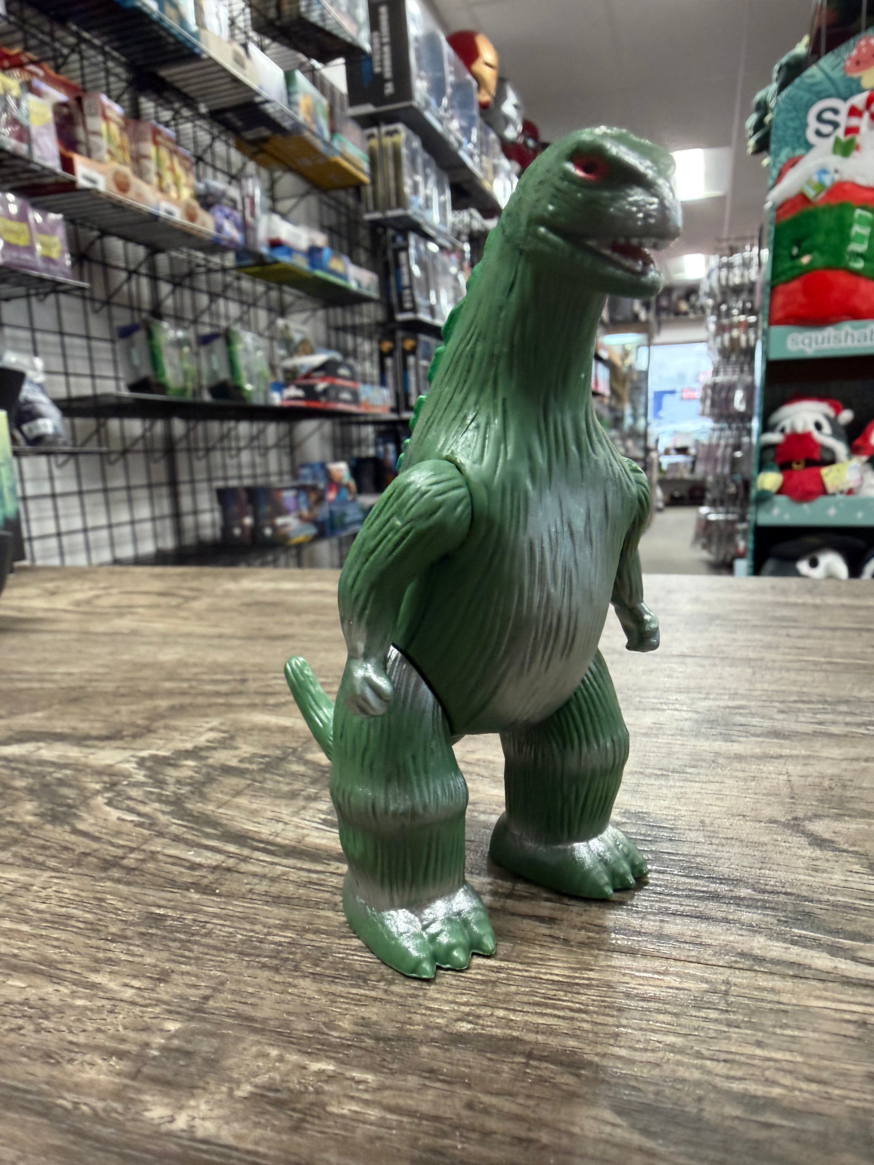Marusan’s articulated vinyl toys must have been a dream come true for kids in the 1960s. Finally, they had a Godzilla toy that could stand up to rough-and-tumble Kaiju play! This 3.75” scale, articulated Toho ReAction Figure of Marusan Godzilla is inspired by the horizontal “L-Tail” from the later versions of the vintage toy and features a dark green sculpted body with metallic silver paint detail, and the Marusan logo stamped on its foot, just like the classic action figure from back in the day! Other collectors will be green with envy once they see the Toho ReAction Figure of this “L-Tail” Marusan Godzilla in your collection!