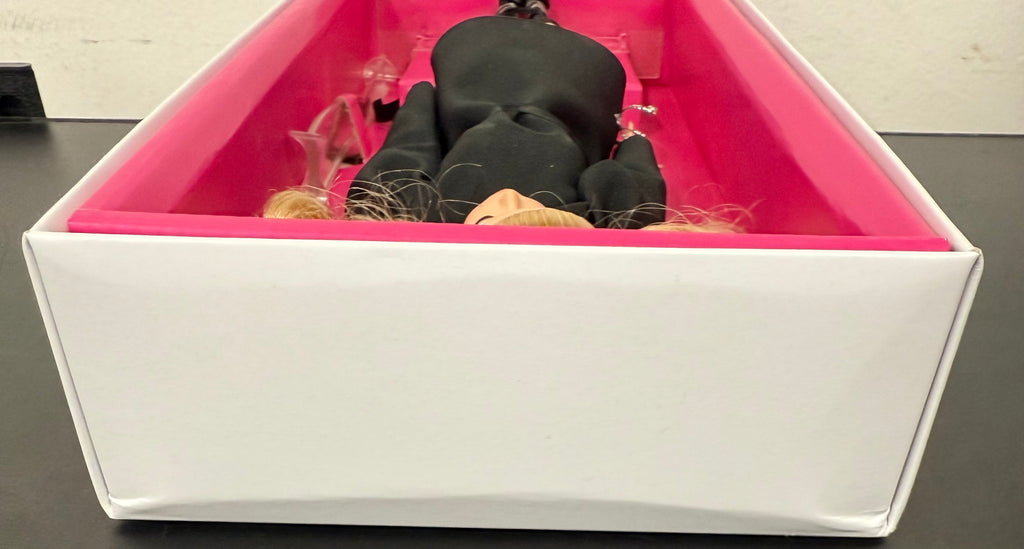 She comes in her original packaging, complete with a display stand and a certificate of authenticity. Barbie is in pristine condition, with all package restraints intact. There is some minor creasing on her outer white and inner pink packaging (see images) - this has been taken into account in her pricing.