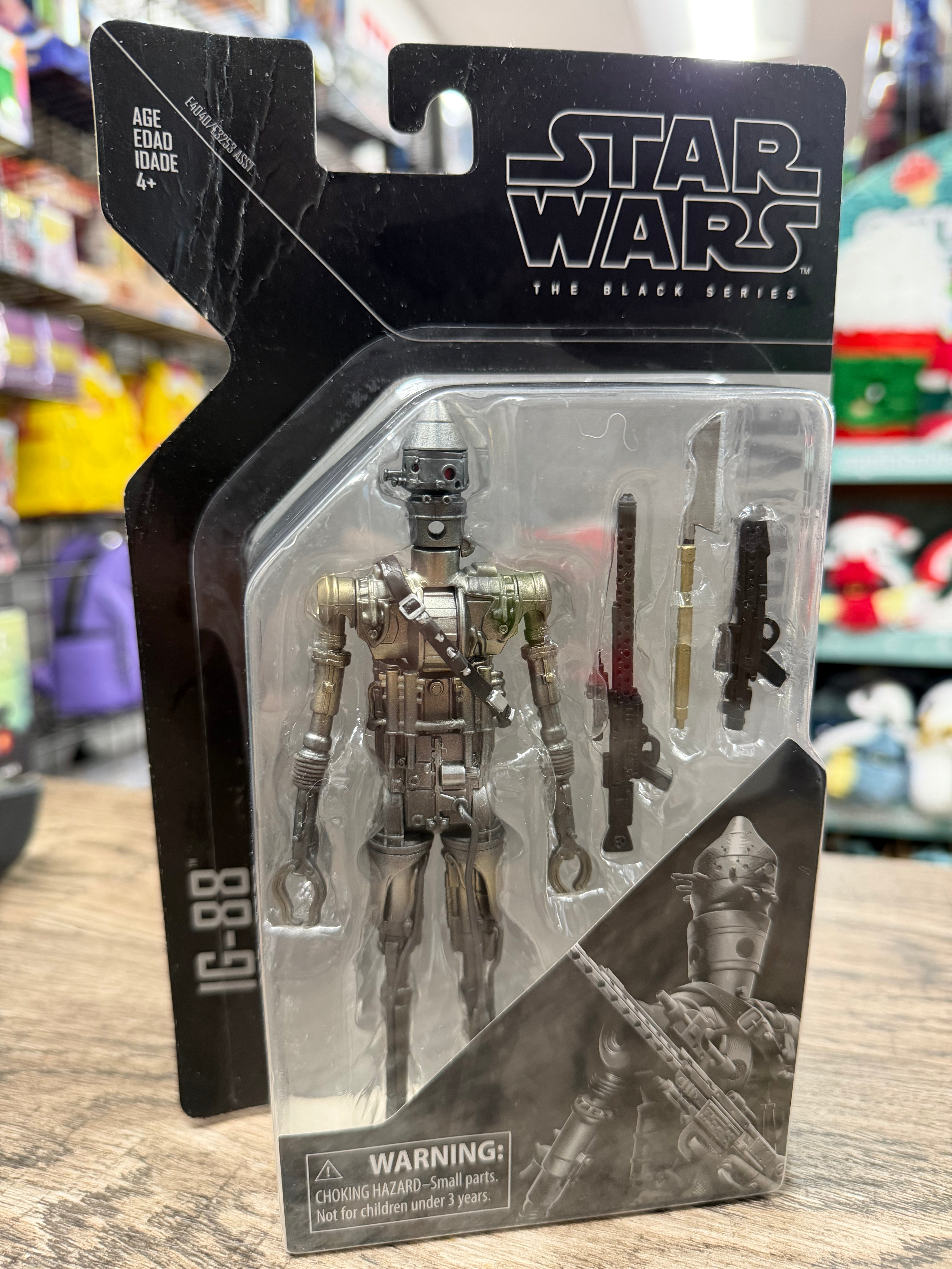 Bring home the legendary bounty hunter with this Hasbro Star Wars The Black Series Archive IG-88 figure. This highly detailed collectible captures the menacing assassin droid in stunning 6-inch scale, featuring premium articulation and authentic movie-inspired design. Perfect for serious Star Wars collectors and fans who appreciate the expanded universe's most formidable characters. Display-ready with exceptional sculpting and paint applications that showcase IG-88's distinctive metallic armor and weaponry. Add this iconic figure to your collection and complete your Black Series lineup with one of the galaxy's most feared hunters.