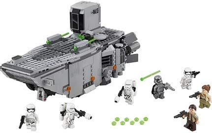 Lower the ramp, load the troopers and get ready to transport them into battle! This heavily armored First Order Transporter™ is packed with cool features, like dual spring-loaded shooters, top-mounted dual-stud shooter and hatch with space for a minifigure, pilot cabin with opening hatch and space for 4 minifigures in the hold, big engines at the rear, and hidden, transparent wheels for a cool ‘hover’ look. You can also remove the top section for easy access. Get ready to recreate incredible battle scenes from Star Wars™: The Force Awakens! Includes 7 minifigures with assorted weapons and accessories: 2 Resistance Soldiers, 2 First Order Flametroopers, 2 First Order Stormtroopers and Captain Phasma.