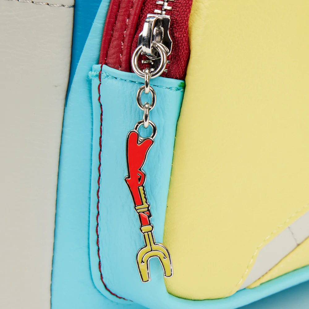Speed through the galaxy with a bounty of style! Take this exclusive Loungefly Star Wars™: Droids New York Comic-Con Boba Fett™ Mini Backpack with you on any important mission. Bright blocks of color in blue, yellow, and red bring Boba Fett’s helmet and armor to life in applique and debossed detail. His rounded helmet makes up the shape of the dome of the backpack, and his chest armor serves as a front, zipped compartment. An enamel zipper charm of Boba-Fett’s forked Amban Sniper Rifle™ tops off the look. On the back, you’ll find The Mandalorian™ symbol. It’s the perfect accessory for carrying out a bounty of fun missions or for turning everyday moments into stellar outings.