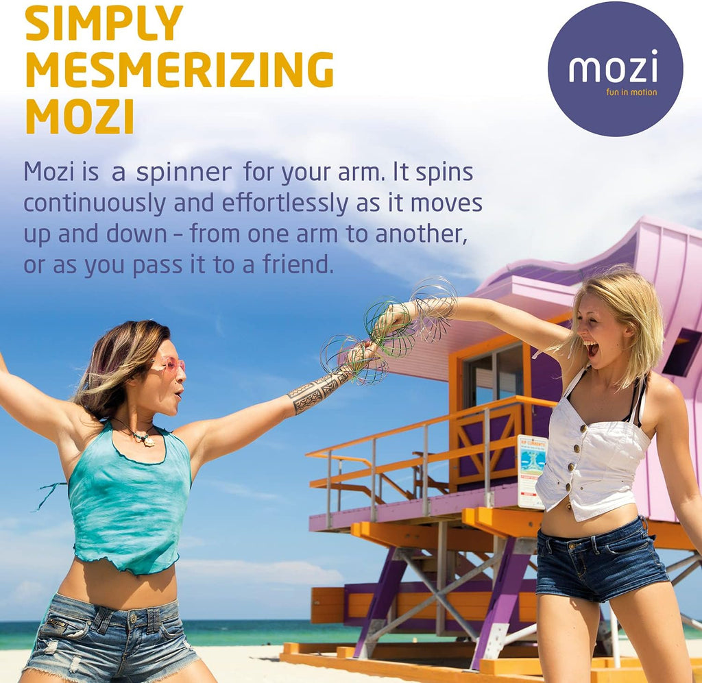 Stop the motion – to pause the dazzling arm spinner of Mozi, hold the kaleidoscopic ball between your hands and turn your top hand counter clockwise. Watch as it quickly flattens for easy storage.
