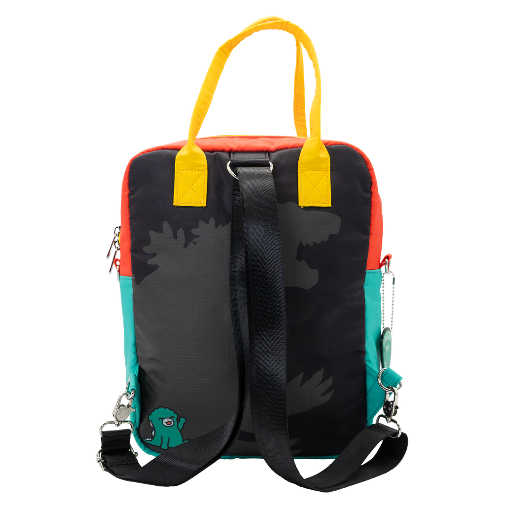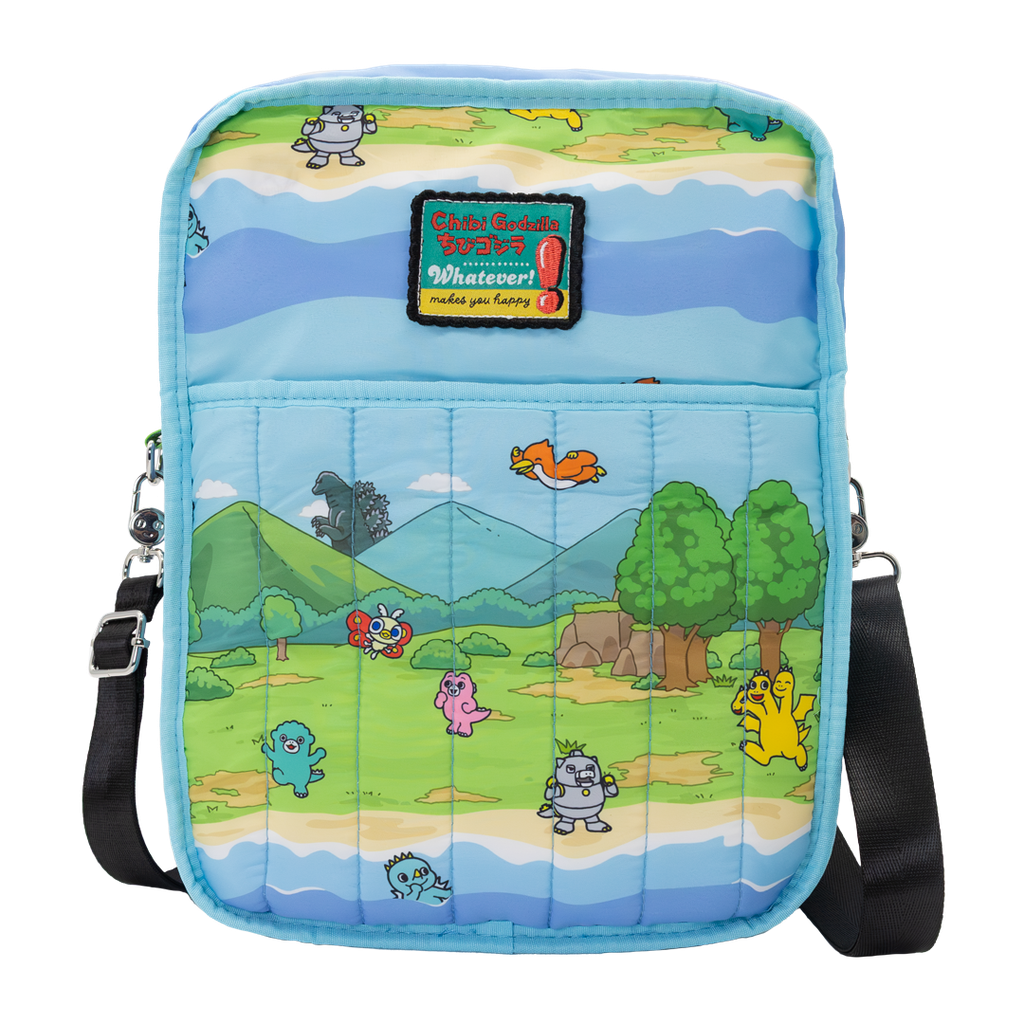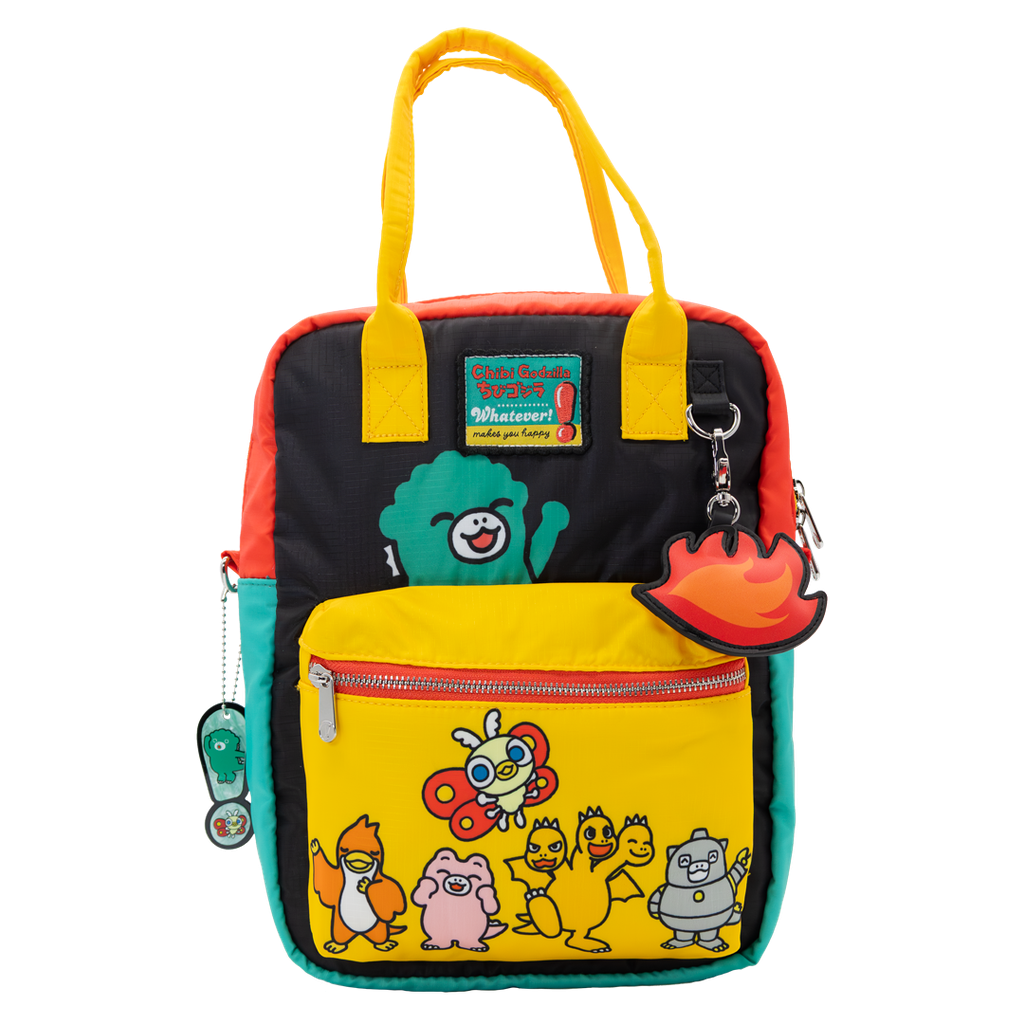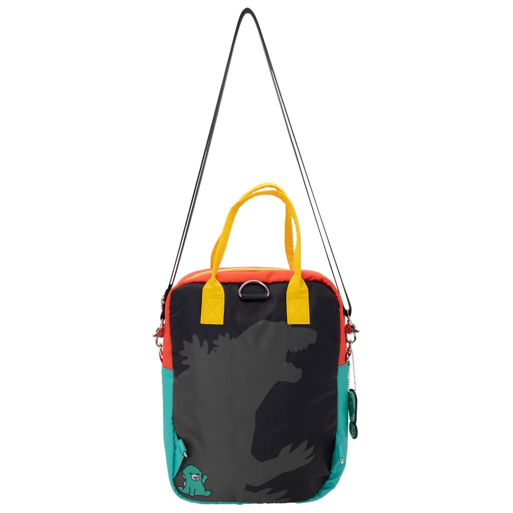 Straight from Japan’s most adorable kaiju adventure, the Chibi Godzilla Raids Again Reversible/Convertible Crossbody Bag is here to stomp its way into your heart! Based on the beloved Chibi Godzilla Raids Again YouTube series, this collection celebrates the pint-sized son of Godzilla and his big dream to grow up strong enough to hug his dad — though for now, he’s just small enough to get adorably squished. This rare property has been incredibly limited in the United States, and Whatever! Makes You Happy is thrilled to bring this delightful version of Godzilla to U.S. fans for the very first time. Designed for ultimate versatility, this bag transforms from a color-blocked backpack into a crossbody bag with just a few simple adjustments. The exterior features bold ripstop nylon with bright pops of kaiju color — Chibi Godzilla and his friends are ready for adventure! Flip it inside out to reveal the printed polyester nylon interior, showcasing a scenic reversible pattern filled with all your favorite characters. A padded tablet pocket keeps your essentials secure, while the included Whatever! Makes You Happy exclamation-point acrylic charm adds a signature collectible touch. Plus, the little flame charm brings Chibi Godzilla’s fiery personality wherever you go! Built for collectors, fans, and anyone who loves function wrapped in fun, this exclusive piece is both practical and playful. Whether worn as a crossbody, carried as a backpack, or displayed as part of your kaiju collection, it’s the ultimate way to show off your Chibi fandom in style.