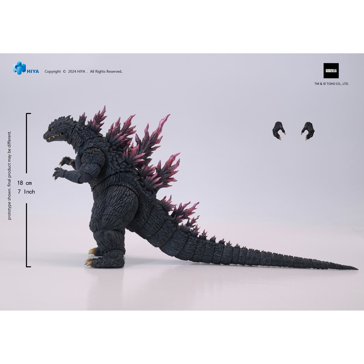 Witness the Godzilla New Century! Now, Godzilla from Godzilla 2000: Millennium (1999) joins the Hiyatoys EXQUISITE BASIC Series. In the film, Godzilla lands in Nemuro, Hokkaido, wreaking havoc before reappearing in Tokaimura, Ibaraki Prefecture. Meanwhile, a mysterious rock mass discovered by the Crisis Control Intelligence (CCI) transforms into a UFO, confronting Godzilla. This new Godzilla action figure stands 7" tall, faithfully recreating the fierce eyes, reptilian mouth, sharp dark green skin, and aged yellowed teeth and claws. The iconic dorsal fin is shaped and painted with metallic purple, mimicking flames. Featuring multiple points of articulation for dynamic poses, the figure also includes 2 interchangeable hands for recreating various battle scenes from the film.