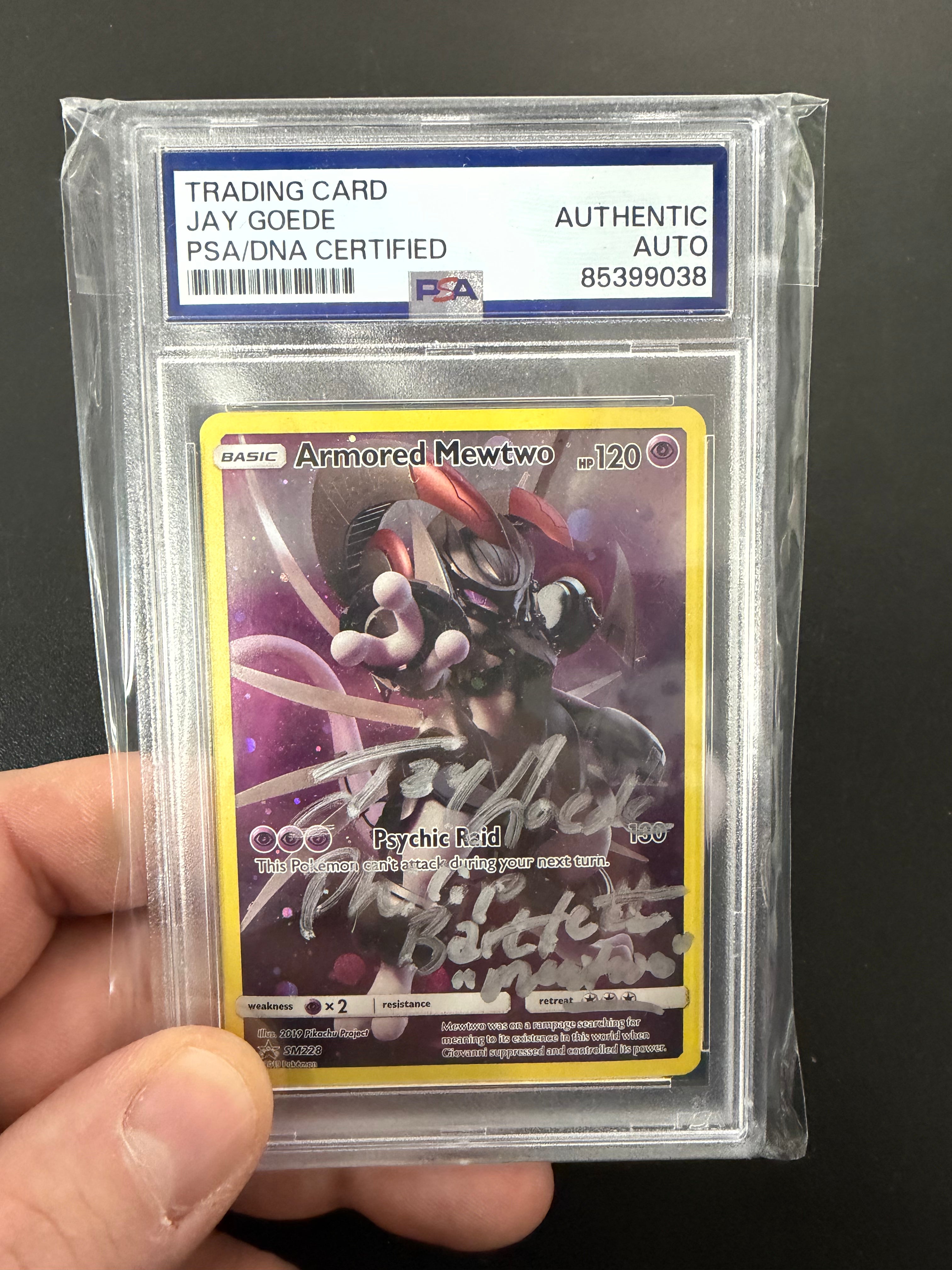 Own a piece of Pokémon history with this rare Armored Mewtwo card, personally signed by renowned artist Jay Goede. This PSA-certified collectible combines iconic artwork with authentic autograph authentication, making it a standout addition to any serious Pokémon TCG collection. Whether you're a dedicated fan, competitive player, or investment-minded collector, this signed card represents both nostalgia and genuine value. Perfect for display or as a centerpiece of your collection, this ungraded gem offers the prestige of professional certification and artist provenance that discerning collectors seek.