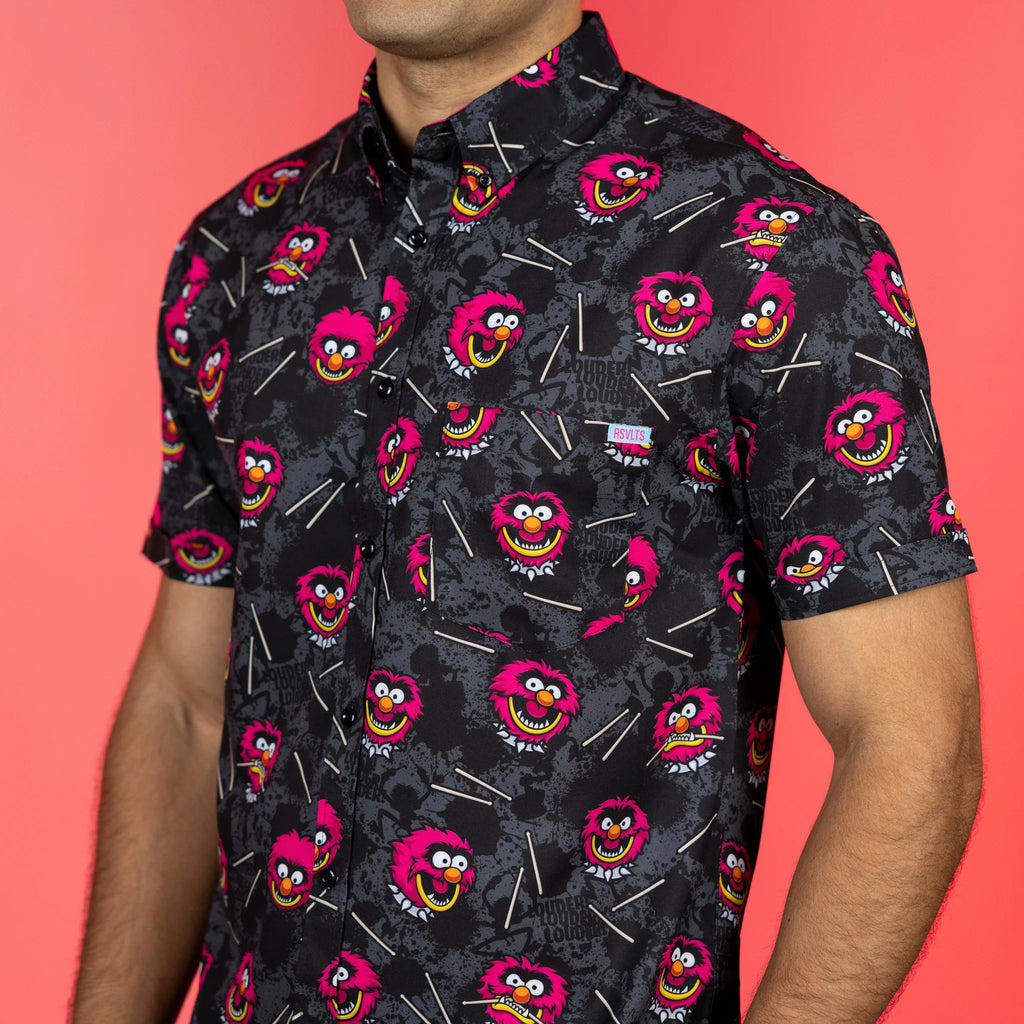Pay homage to the legendary Disney’s Animal, across this soft and stretchy KUNUFLEX™ button down that features the primal percussionist’s ferociously furry face. It’s a fitting tribute to the artist whose frenzied beats and infinite creativity have ensured his name will be screamed with reverence for eons.
