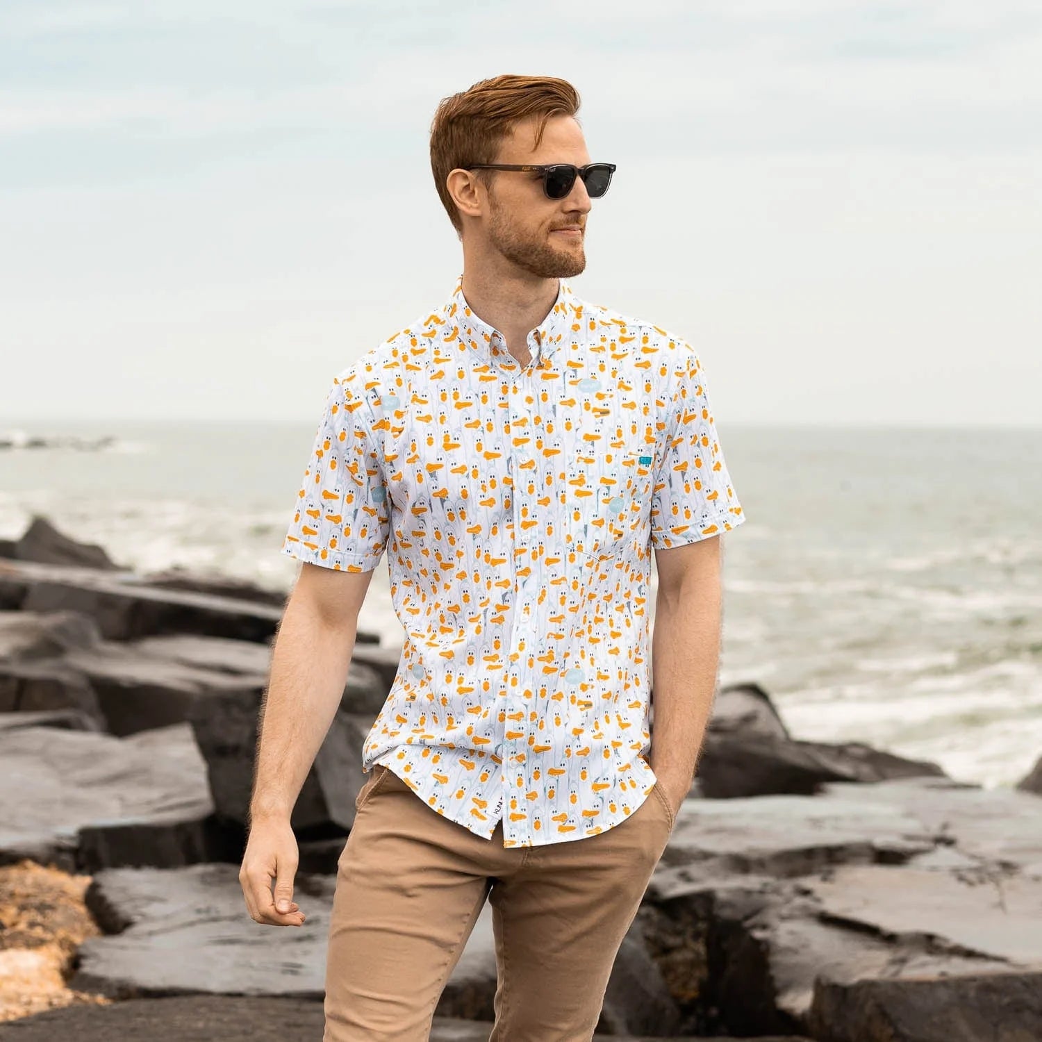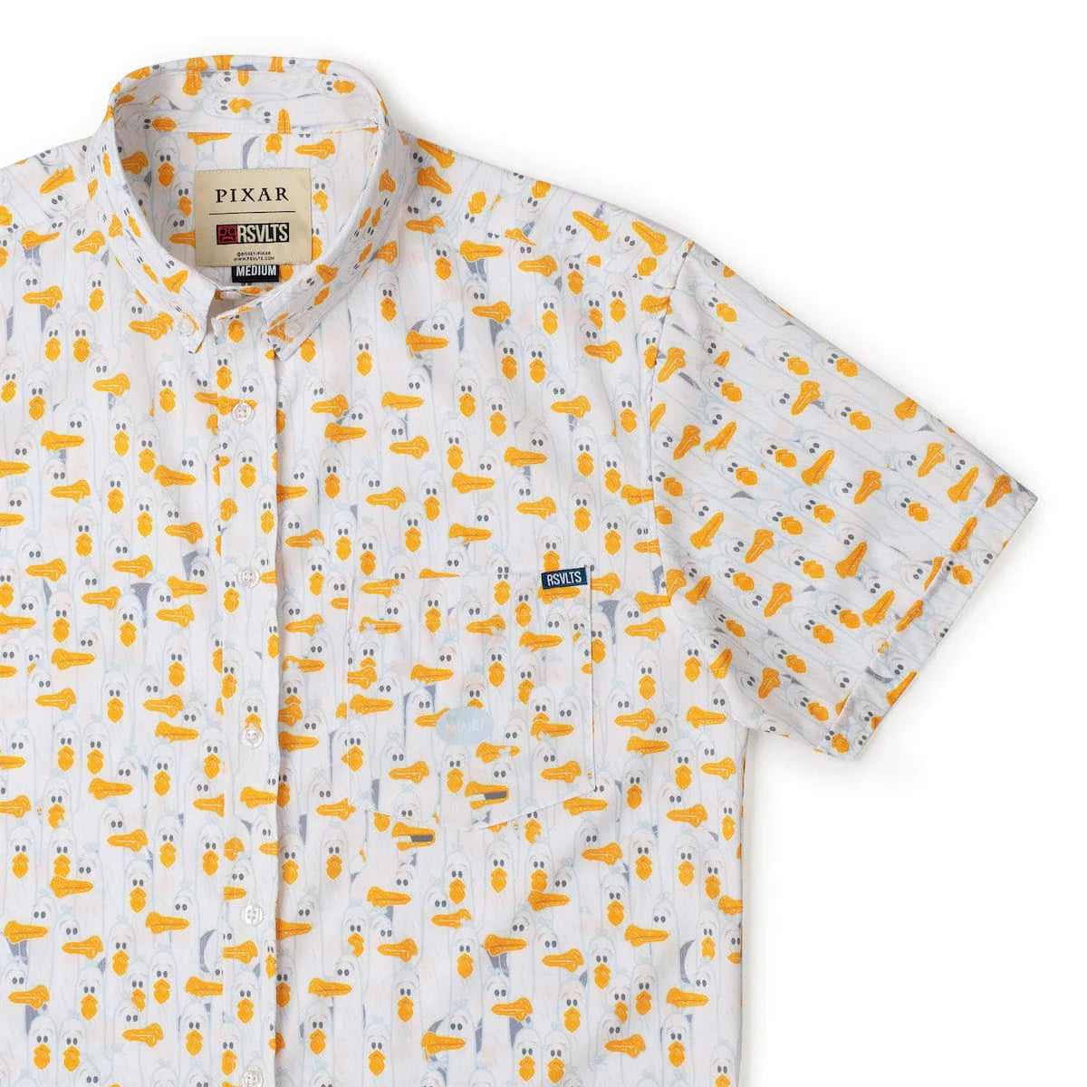 Everybody fasten your seatbelts, but don't make any sudden movements. This isn't just any old bright and colorful shirt pattern, those are actually the diabolically hungry seagulls from Disney and Pixar's Finding Nemo! Feast your eyes on those feasting their eyes with this soft and stretchy KUNUFLEX™ button down.